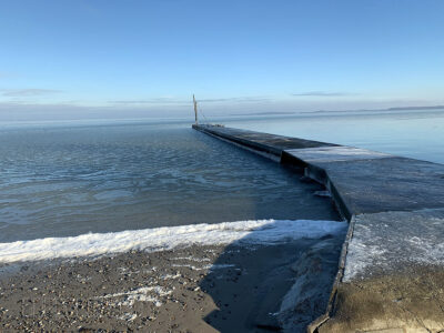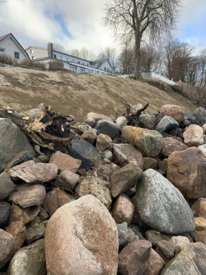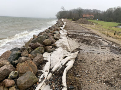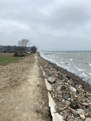 Der Wiederaufbau des Küstenschutzes ist wetterbedingt noch lange nicht abgeschlossen, aber hält zumindest den ‚normalen‘ Winterhochwasser stand.