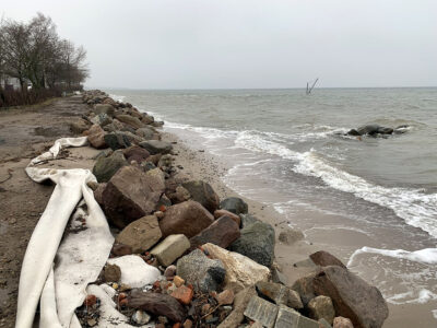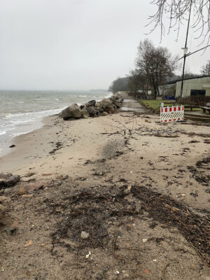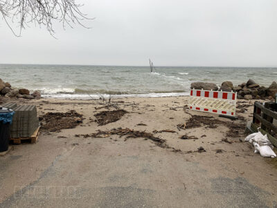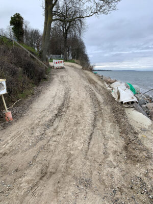 Auch nach 142 Tagen nach der zweitgrößten Jahrhundert Sturmflut vom 20.10.2023 ist der Küstenschutz leider noch nicht wieder komplett hergestellt. Der Strandweg /Ostseefahrradweg hat wetterbedingt noch keine neue feste Straßendecke. Alle hoffen, dass es in der nächsten Woche mit der Reparatur des Küstenschutzes weiter geht.