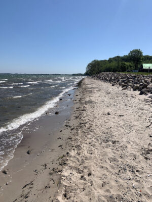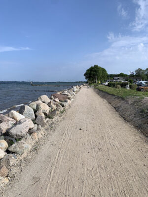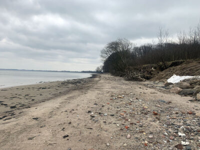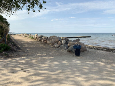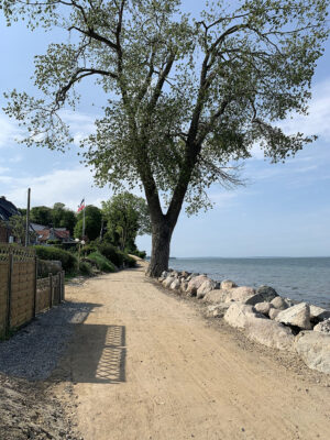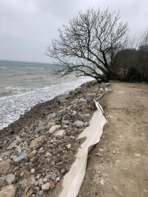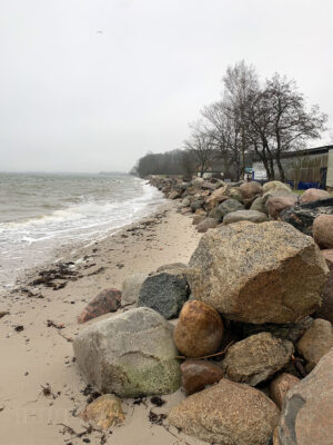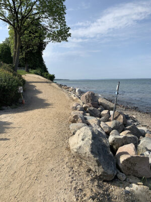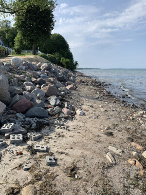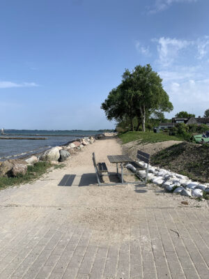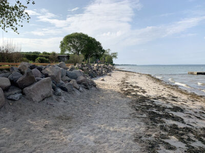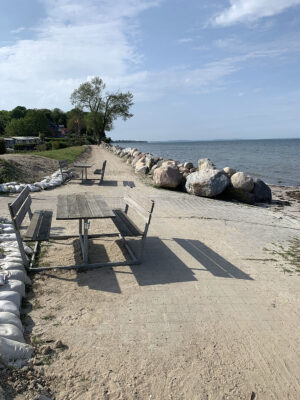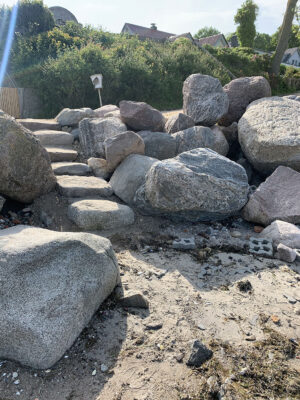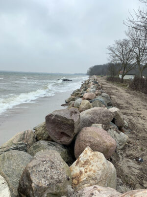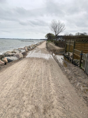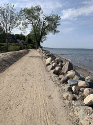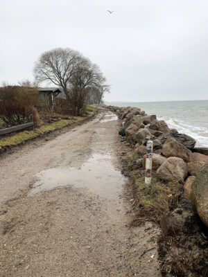 Am Ende der Fischerstraße zwischen den Steinwall ist kein Flutschott, ähnlich wie auf dem Campingplatz geplant.